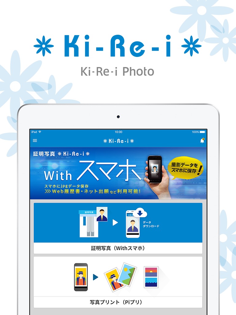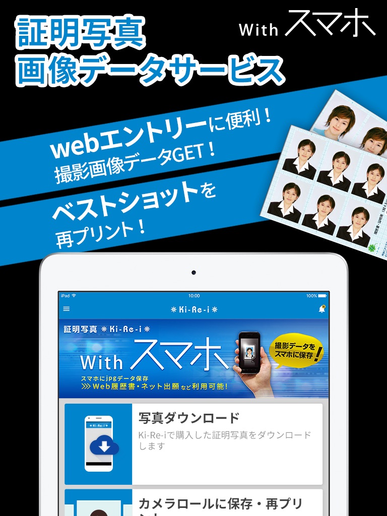 ※証明写真撮影データの取得・送信は、このアプリケーションに対応した証明写真機「Ki-Re-i」でのみご利用いただけます。