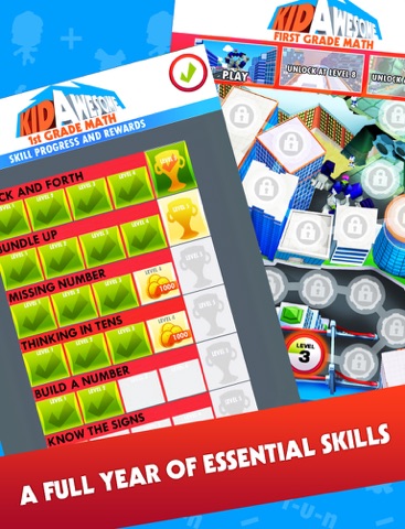 Designed with a carefully constructed curriculum path and with the power to adapt to each child, Kid Awesome 1st Grade Math assures kids are presented with critical material at the right speed and level. Best of all, kids to take on the role of a personalized superhero who can save the city with their combination of learning and powers.