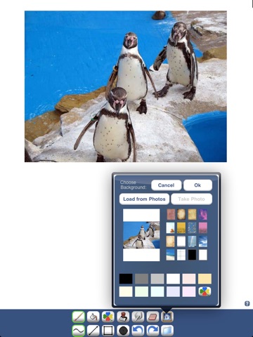 The Background Tool lets you choose your Background from set or custom Colors, in-App Images, Imported Images from your Photo Roll, or Photos taken right in the App!