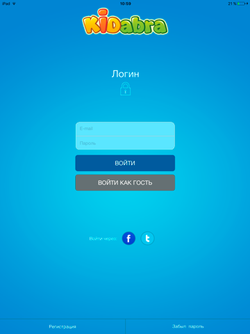 Регистрируйтесь в приложении или используйте для быстрого входа свои аккаунты в социальных сетях Facebook или Twitter.