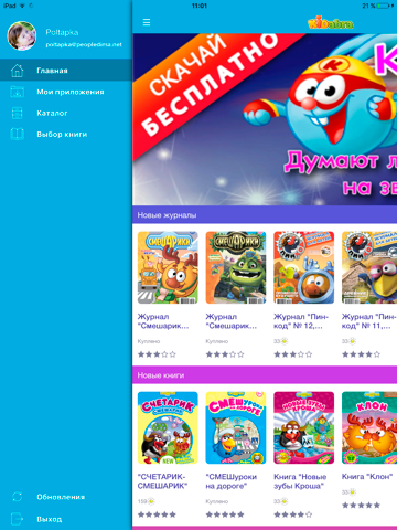 Скачивайте книги, журналы и мультфильмы со Смешариками на свои персональные устройства.