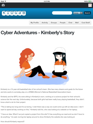 KidGab features wall posts, a custom avatar creator, a mall full of unique avatar goodies, personality quizzes, online Girl Scout badges, and more!