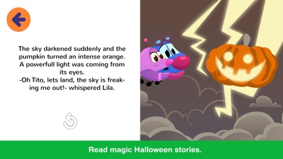 A collection of halloween themed books, videos and minigames, with several different mechanics from puzzles to sorting and memory games.