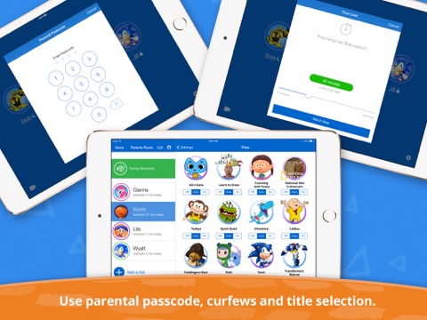 - Create your own profile, customizable by color, avatar, title selection, and age group set parental control screen time limits