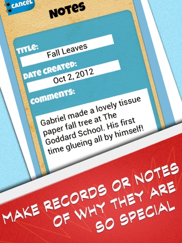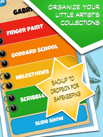 Keep each and every work of art that your child creates for as long as you like! Save it to your camera roll or within your Kidpix gallery and then backup to Dropbox just in case.