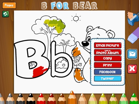 - Share your creations with the whole world through Facebook and Twitter. You can also mail it to your friends and take a print out and stick it on your wall.