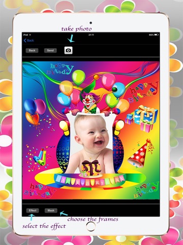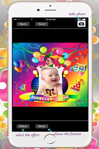 * Frame Camera– Choose your favourite kid’s birthday photo frame to capture your picture together.