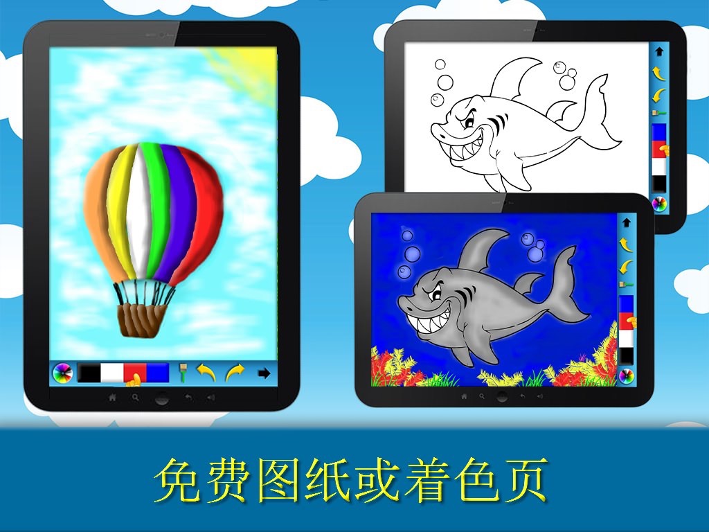 Drawing for kids with coloring book. Different menu for each age. There are neon and laser brushes and usual brushes for drawing. Coloring pages with animals,people,cars,transportation. Gallery with automatic saving. Child can draw alone, and all the paintings are saved. Supports multi touch.