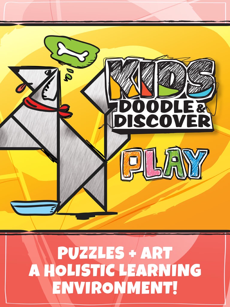 Kids Doodle & Discover combines tangram puzzles, coloring tools and a variety of interchangeable illustrations to create a full screen educational toy experience - for kids to unleash their creativity and bring out their inner artist. This edition teaches kids about dogs through play, audio and visual association.