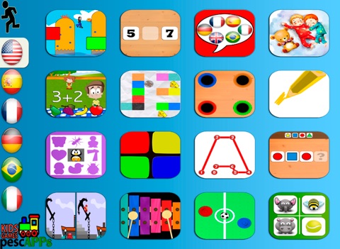 This application is purpose-designed to be easy for kids to use. It comprises 16 GAMES to help kids learn while they have fun. The game includes the following languages: English, Spanish, Italian, French, German, Portuguese.