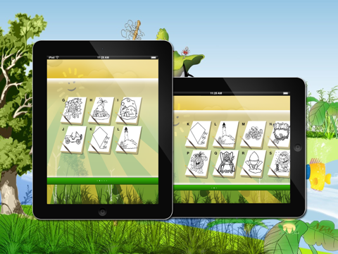 Choose from among 26 drawings from each letter of the alphabet to fill with color.