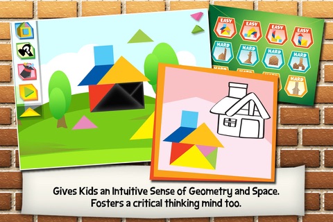 A simple yet fun and educational tangram puzzle game designed to foster critical thinking, spatial rotation skills, and an intuitive sense of geometry in children. This edition teaches kids about man-made structures through play, audio and visual association.