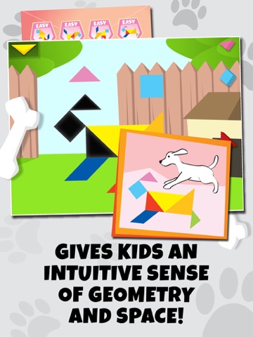 A simple yet fun and educational tangram puzzle game designed to foster critical thinking, spatial rotation skills, and an intuitive sense of geometry in children. This edition teaches kids about dogs through play, audio and visual association.