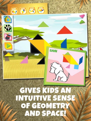 A simple yet fun and educational tangram puzzle game designed to foster critical thinking, spatial rotation skills, and an intuitive sense of geometry in children. This edition teaches kids about safari widlife through play, audio and visual association.