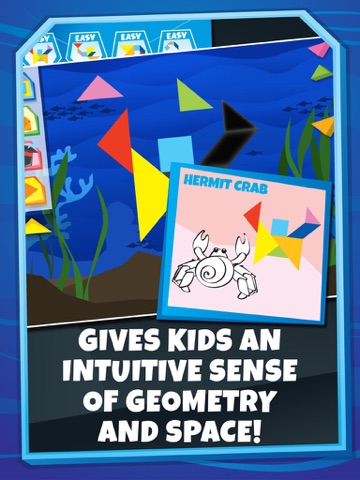 A simple yet fun and educational tangram puzzle game designed to foster critical thinking, spatial rotation skills, and an intuitive sense of geometry in children. This edition teaches kids about marine life through play, audio and visual association.