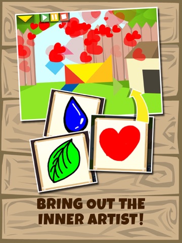 Teaching kids to draw and paint can be fun for the entire family. With an open canvas design - Kinder Tangram is also a stimulating environment for teens to express ideas and feelings they hold deep inside their hearts. Finally, coloring helps to develop fine motor skills.