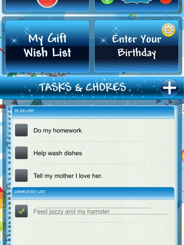 Kids LISTS is an Organizer for Kids. It will help a child be more organized, keeping Tasks & Chores logged, Diary Journal, Reading Lists, Homework reminders, Tooth brushing reminders, Gift Wish lists, & Birthday countdowns. These lists can be emailed at will.