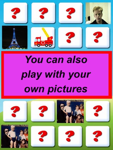 “Kids Memo” is a game for children, allowing them to discover the sounds of animals, the sounds of musical instruments, to get to know different means of transport as well as their closest environment of family, toys etc. through the memory cards.