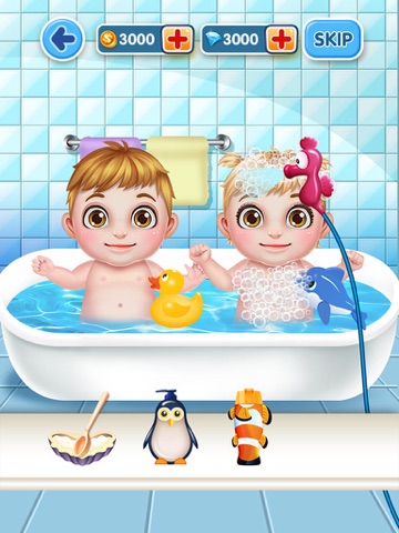 The twins need a bath. Please adjust the temperature of the water, fill the bath and then give them a warm bath.There are many most funny games in it.