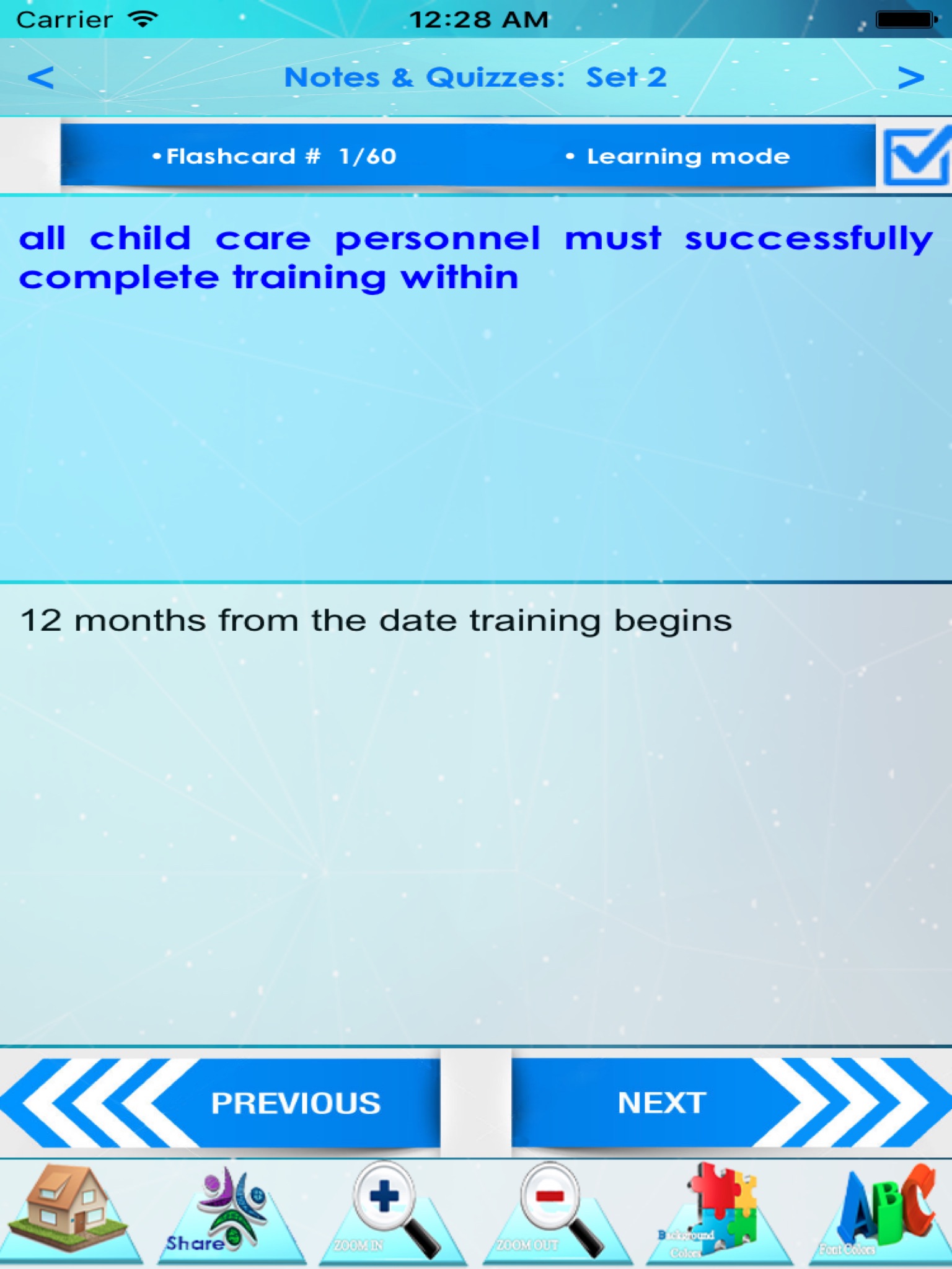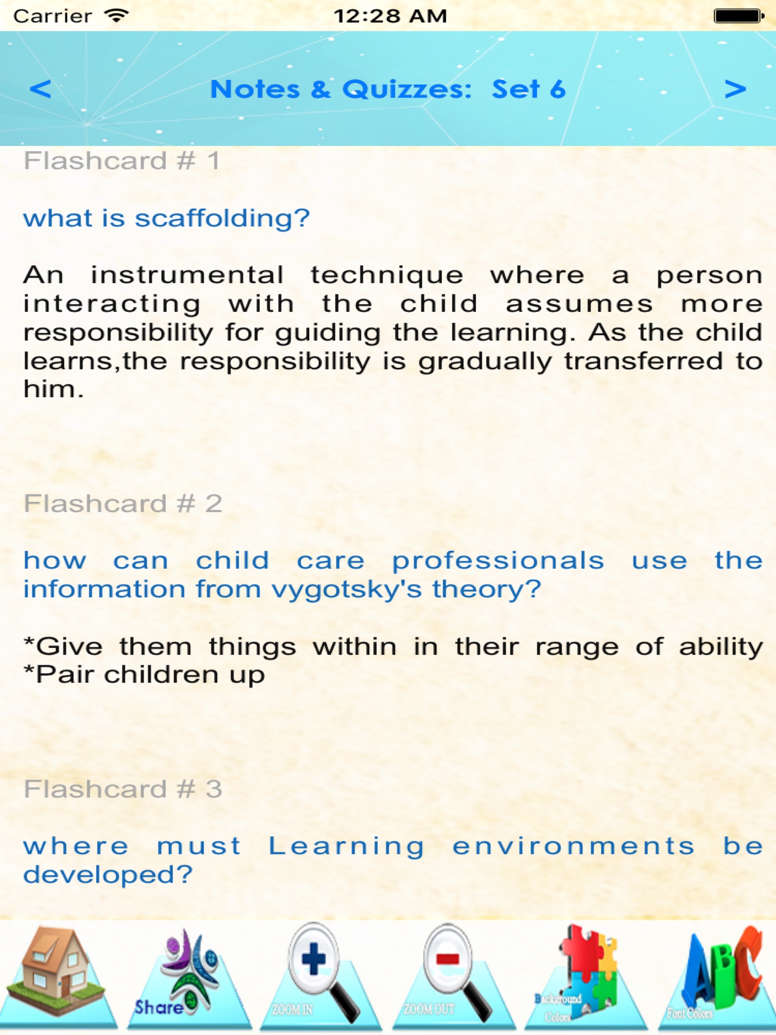 This app is a combination of sets, containing practice questions and study cards, terms & concepts for self learning & exam preparation on the topic of Child Nutrition & Health Care.