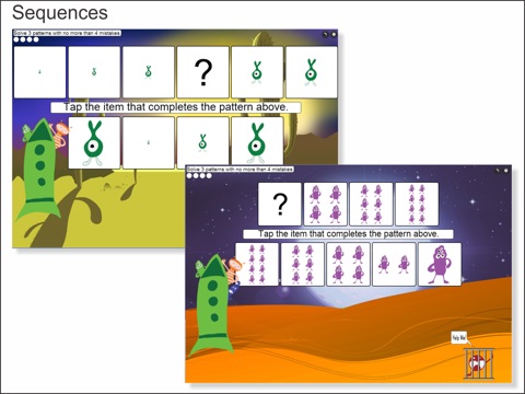 WHAT: Help the hero complete the sequences or patterns to save the monsters that were kidnapped. This game has 126 puzzles. The game includes ACABC patterns, patterns for counting by 1s 2s, 3s, 5s, and 10s and puzzles puzzles to figure out which one is missing in a range of pictures that increase or decrease in size.