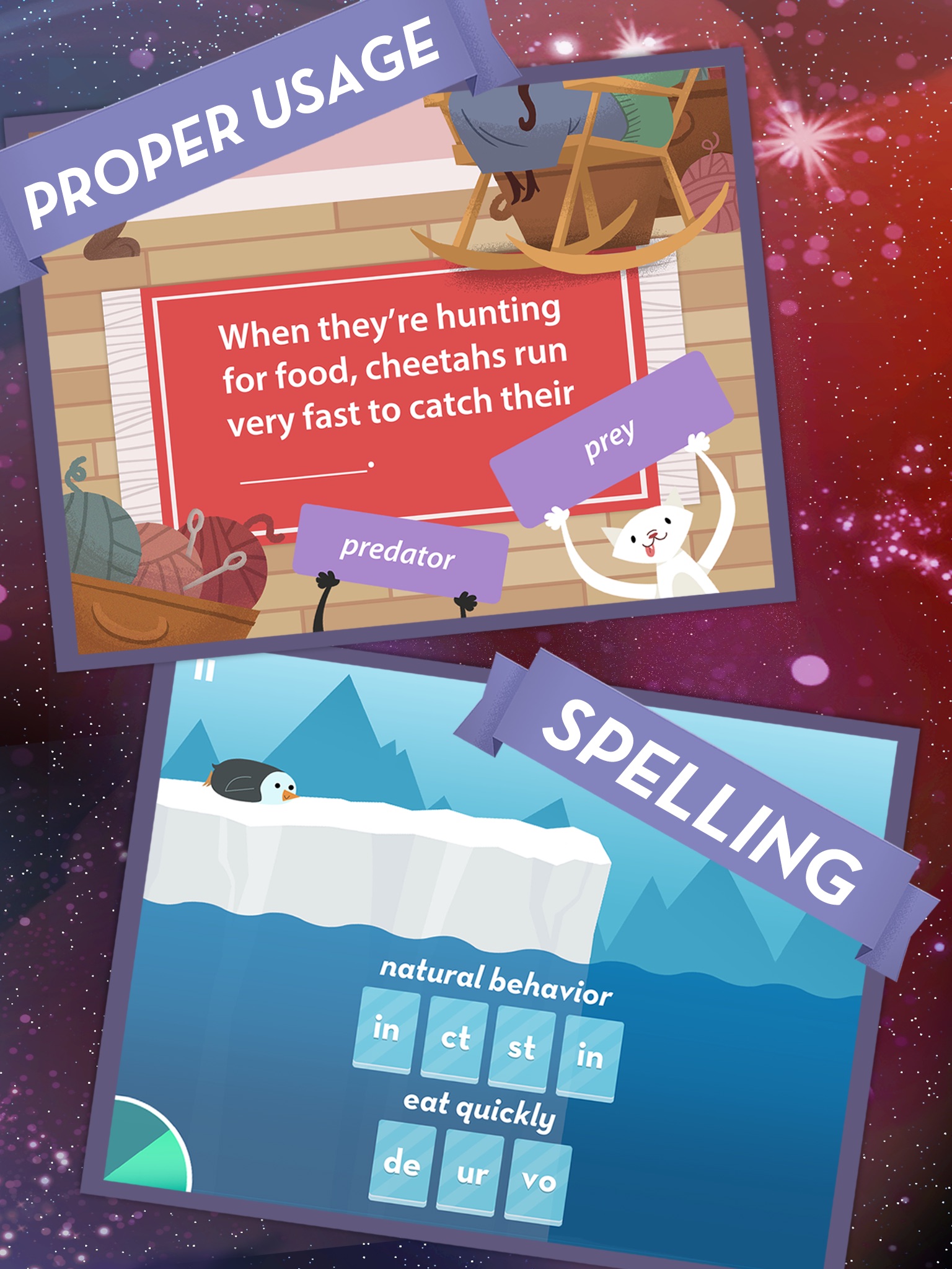 Just like in our Parents’ Choice Award-winning SAT Vocab app, the games in Kids’ Vocab focus on different aspects of vocabulary development. Each lesson features new words and phrases while teaching spelling, usage and pronunciation. In other words, vocabularies everywhere are about to hit a major growth spurt.