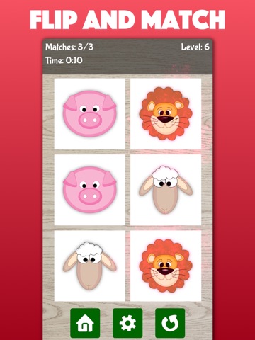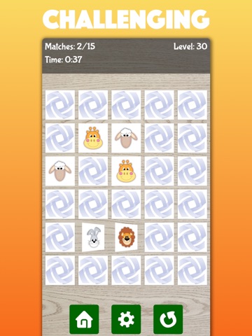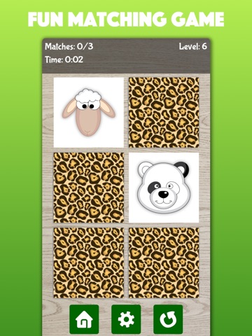 Enjoy this classic matching game featuring images of animals, such as lion, elephant, monkey and more. With 5 levels ranging in difficulty this game is suitable both for toddlers and kids. See how you have performed with the wide range of different statistics in the Highscore screen.