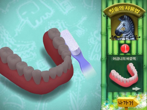 . 이를 닦는 방법을 아름다운 일러스트레이션과 함께 직접 시연해 볼 수 있습니다.