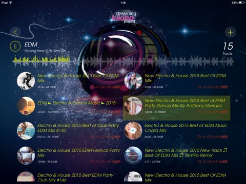・プレイリストに登録された楽曲はいつでもストリーミング再生できます。