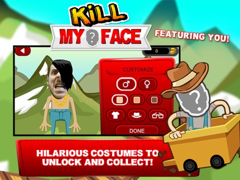 Upload your photo and be part of the game! A funny action game, featuring YOU! Play 8 clever and funny mini games with your customized character. Unlock original costumes as you go and try to get the highest score. You will also collect coins in each game which you can then use to buy swag and special disguises.
