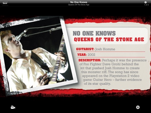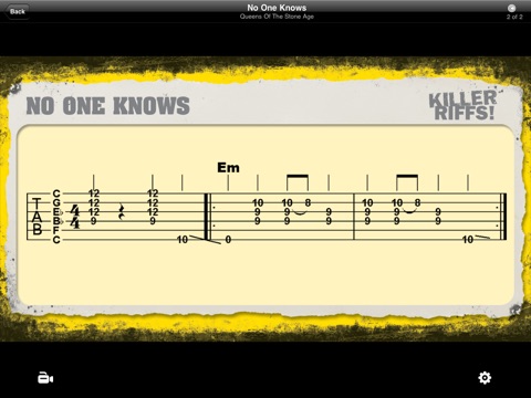 For each riff you can view song information, guitar tablature and a video of the riff being played.