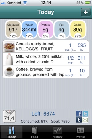 The fast and easy kilojoule counter. Huge and accurate food database. Very fast food entry.