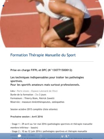 Formations pour masseurs kinesitherapeutes en therapie manuelle, ostéopathie du sport, crochetage kine.