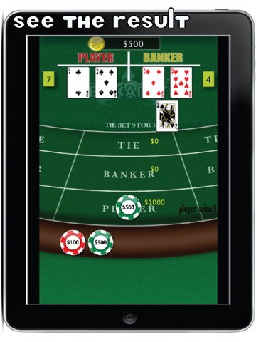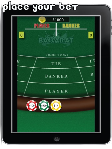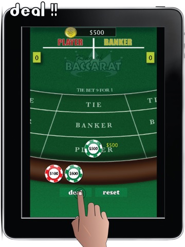 The game works fine, but I have a laundry list of improvements Id like to see. Mostly too many clicks to actually play. (1) opening screen... Why do I have to press "start"? (2) dont want to press "deal" each time. Should be a set time interval for placing bets, then automatically deal. (3) dont want to press "next" to start the next game. And especially since "deal" does that already anyway. Thats two clicks that are completely unnecessary. (4) graphics and score text need improvement; especially difficult to watch the cards and keep score. Cards all over the place. Makes my eyes swim. (5) get tired of dragging chips; better to be able to select Banker/Player/Tie then click the chips. (4)