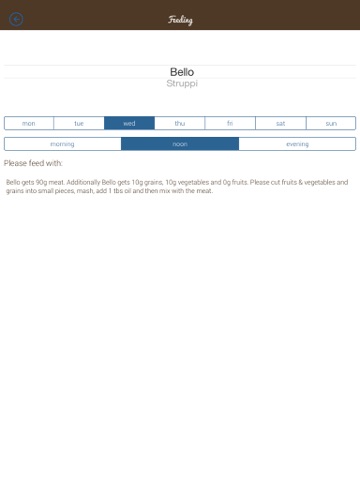 - Flexible arrangements of feeding types (i.e. tripe on saturday instead of monday)