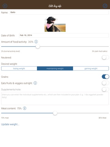 King Barf helps you with bones and raw food for your dogs. The app calculates the optimal BARF Feeding plan for your canine and reminds you of feeding times, weight control and worm prophylaxis. A chart gives you oversight over the weight history of your dog. Additionally, the app answers many questions about barfing.