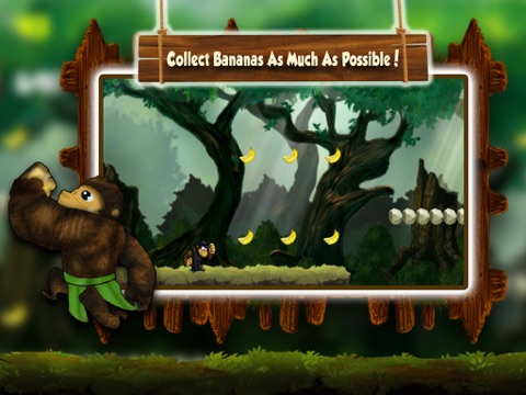 King kong is going on a new adventure ! The King kong want to pick up fruits but the jungle is full of danger and needs your help. Jump all over this crazy jungle to get as many banana as you can. Do not fall off the ground and bump the birds around the jungle.
