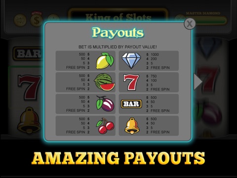 Just tap the spin button and WIN the most amazing MEGA JACKPOT! King of Slot is filled with hours of fun. It offers exciting features with generous payouts, daily and hourly bonus and bonus games. Free spin whenever you match two symbols. It pays left to right as well right to left.