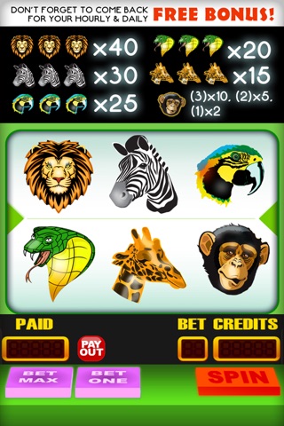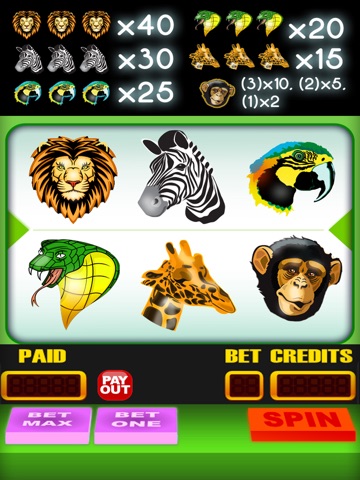 Test your luck as the King of Jungle and and spin the slots like wild in this simple,fast-paced casino game. Match the exotic animals to win. Its like having a real vegas casino slot machine in your pocket--play anywhere, anytime!