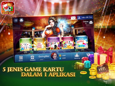 KingAce 2016 memiliki 5 game kartu dalam 1 aplikasi:
