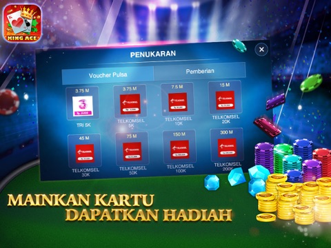 KingAce permainan kartu dikenalkan sebagai cardgame terbaik di Indonesia, bersama dengan misi spesial membawa sebuah permainan dengan banyak bonus hingga jutaan Koin. Kingace juga memiliki fungsi tukarkan Ruby menjadi Pulsa. Sekarang sudah banyak permainan dan terkenal seluruh Indonesia.