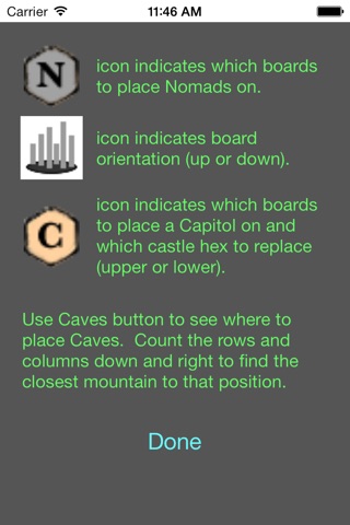All current Kingdom Builder tiles, cards, and promos are supported, including Nomads, Crossroads, Caves and Capitol. And as more expansions/promos arrive, I will integrate them into this app at no additional cost to you. Nomads and Crossroads expansions can be disabled through a settings area. Though, if you dont have the Capitol or Caves or dont want to use it, simply ignore it.