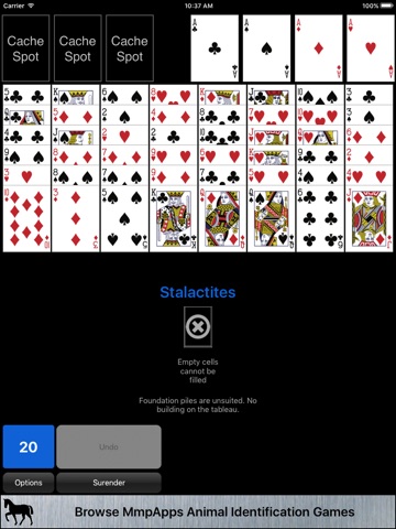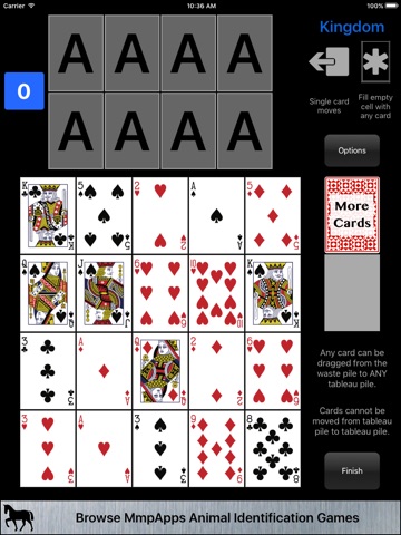 Exotic solitaire games where the foundation is unsuited. All four games are fully enabled and free-to-play, no in-app purchases.