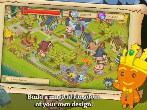 Become the ultimate storyteller and create your own magical fairytale with familiar characters, including the Three Little Pigs, Gingerbread Man and even Robin Hood! Sprinkle magic over your kingdom to help your brave heroes while they complete quests like saving Little Red Riding Hood from the Big Bad Wolf! Take your heroes on fairytale adventures to gain experience, collect coins and find special treasure too. Customize your kingdom with unique fairytale decorations and show off your magical kingdom to your Facebook friends!