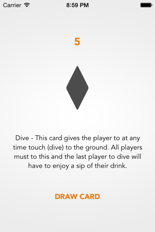 This app is simple to use, a player simply draws a card from the deck and the rule is revealed!