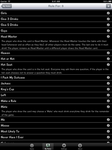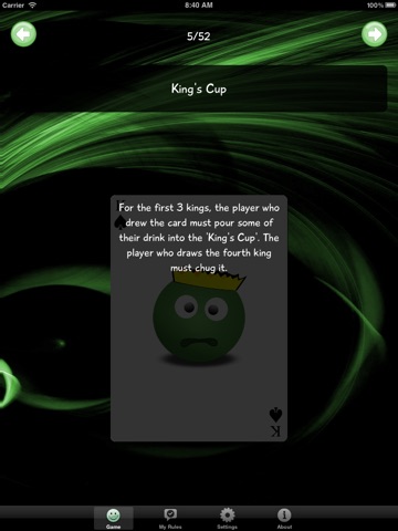 Gather some friends around, everyone with a drink in their hand. Everyone takes a turn drawing a card (touching the screen). Do whatever the action is for that card (press the rule label if youre not sure) and continue on to the next player. Play until there are either no cards or alcohol left!