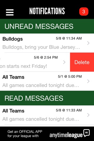 - Receive Team-Specific Messages (game cancellations, etc.)