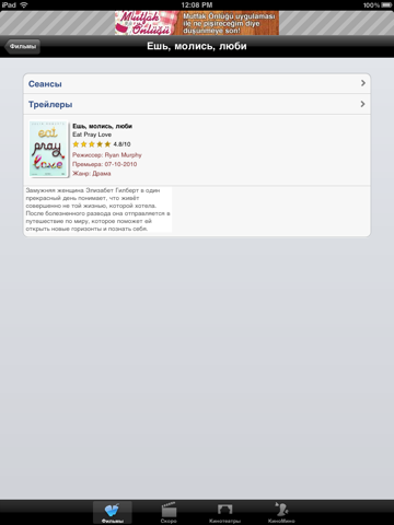 КиноМино - это новейший сервис для пользователей iPhone по просмотру киносеансов. Тот, кто установил данное приложение, сможет узнать расписание киносеансов и просмотреть трейлеры к фильмам в ближайшем относительно своего месторасположения кинотеатре Украины.