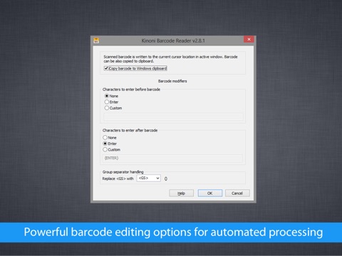 • Easily add keystrokes before and after barcode data (for example enter- or tab-keys)