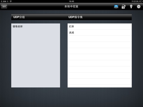 展厅中控系统iPad客户端,用于展厅展项、PC、投影仪等的控制。